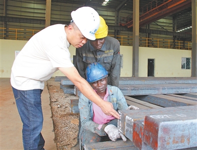 在联合钢铁厂,中乌员工讨论技术细节。本报记者 邹 松摄