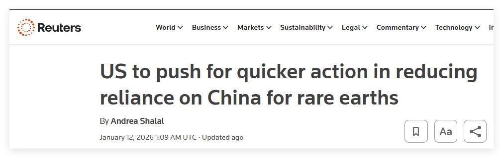 AI摘要:据英国路透社报道,尽管美国政府希望在当地时间周一召开的七国集团(G7)部长级会议上加速推进稀土供应问题的解决方案,减少对中国的依赖,但其他与会各国对此事却并不像美国那么急于求成。路透社称,尽管G7的7个成员国,外加受邀参会的欧盟、澳大利亚、韩国和印度,合计占据全球60%的稀土需求,但美方官员透露,美国财政部长贝森特对许多与会国家未就此事展现出足够 “紧迫性” 感到 “恼火”。本月12日,中国外交部发言人毛宁在回应G7开会商谈稀土以及中方对日本加强稀土出口管制的提问时表示,中方加强两用物项对日本的出口管制,是为了维护国家安全和利益,履行防扩散等国际义务,完全正当合理合法。