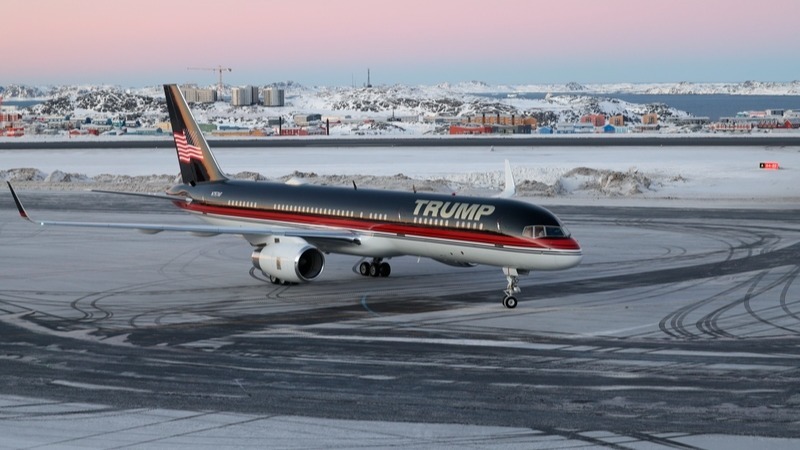 当地时间2025年1月7日,格陵兰岛首府努克,特朗普的儿子小唐纳德·特朗普乘坐飞机抵达努克机场。 IC Photo