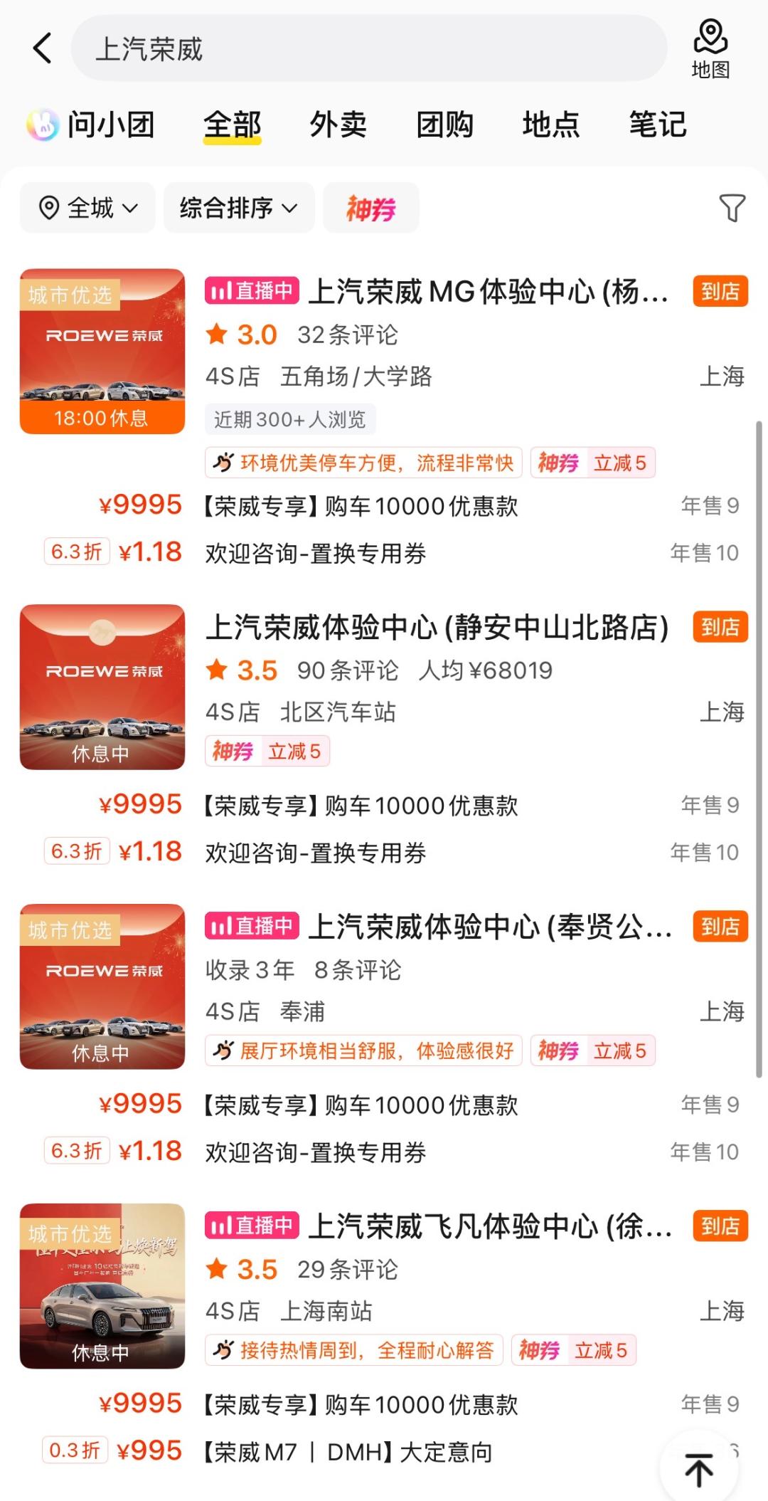 再次是建立一套“选车-购车-用车-养车”的全链路闭环,真正实现“本地化+即时性”。用户打开美团,能精准匹配周边4S店,看车型、查口碑、预约试驾;购车时能领平台补贴,比如目前已经和上汽合作的1000抵3000的膨胀金,还能拿商场停车券、加油充电包等跨界权益;用车时,维修保养、上门取送车都能一站式解决。