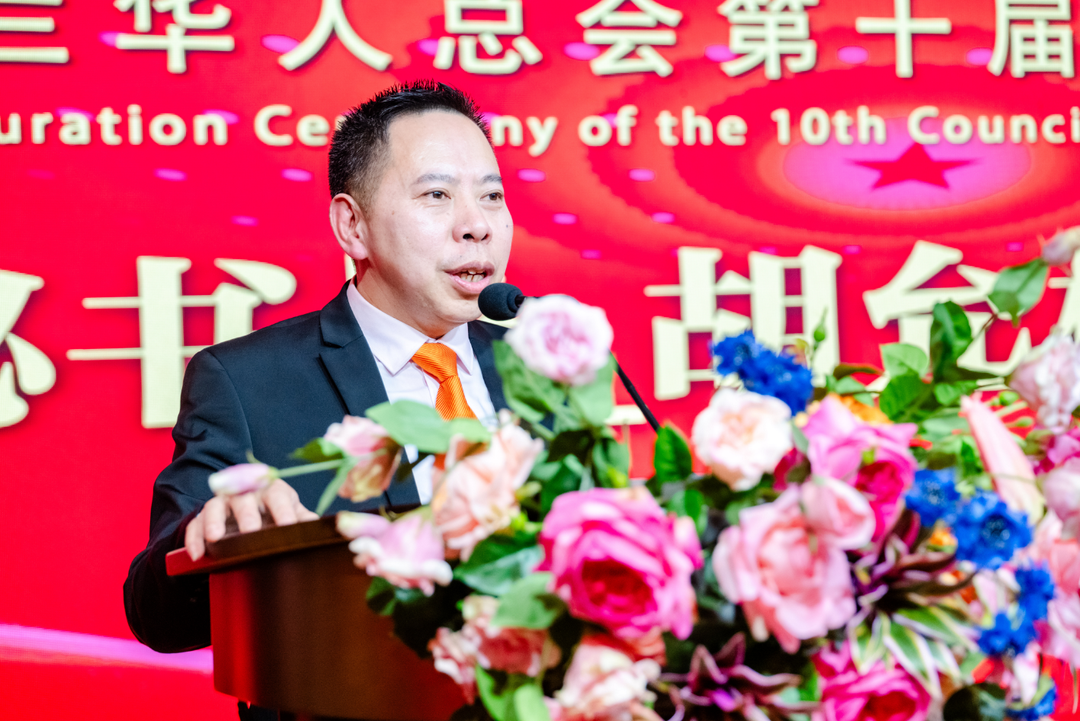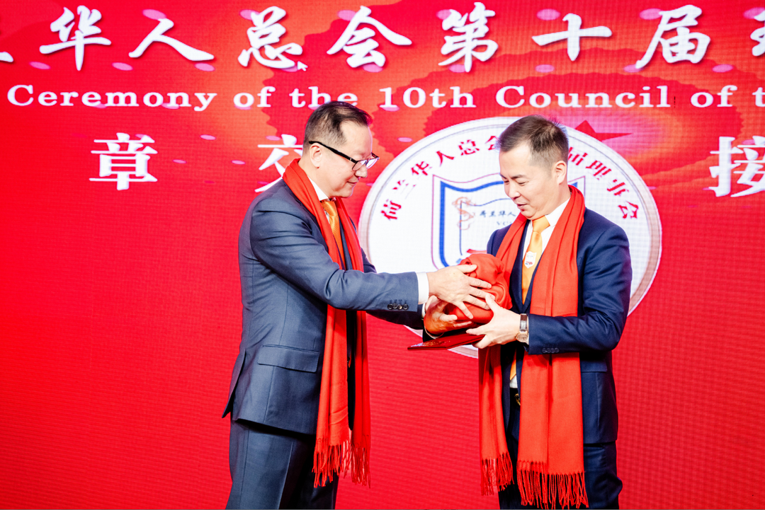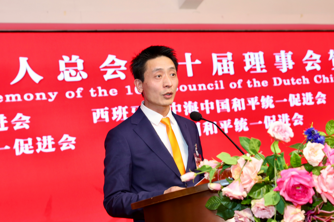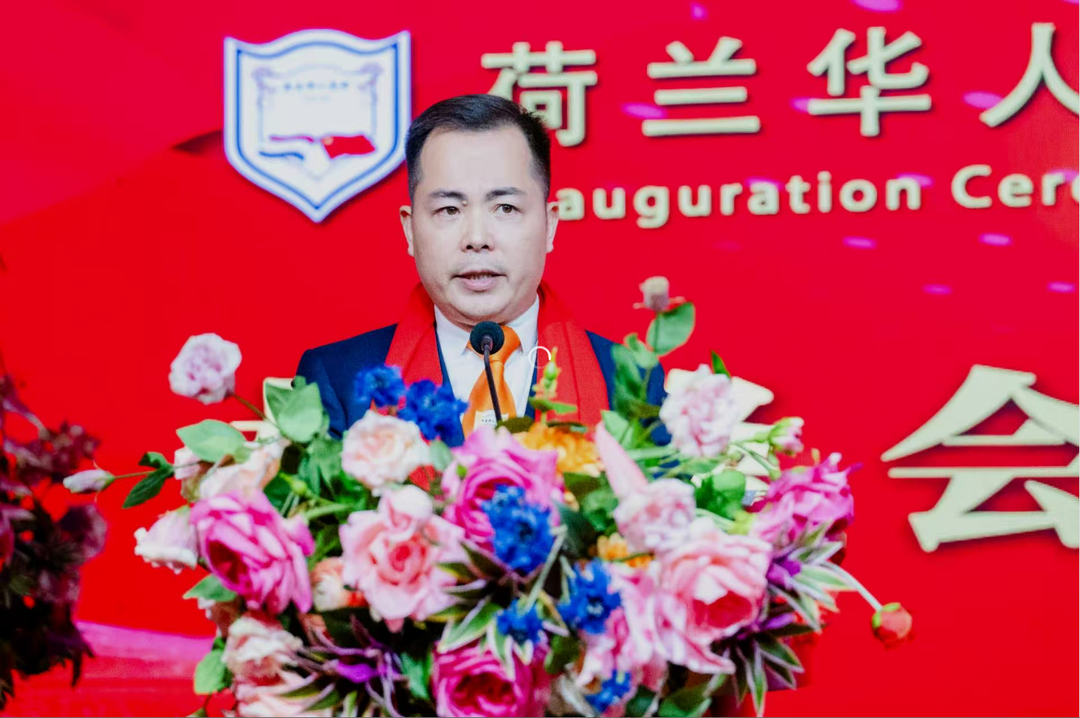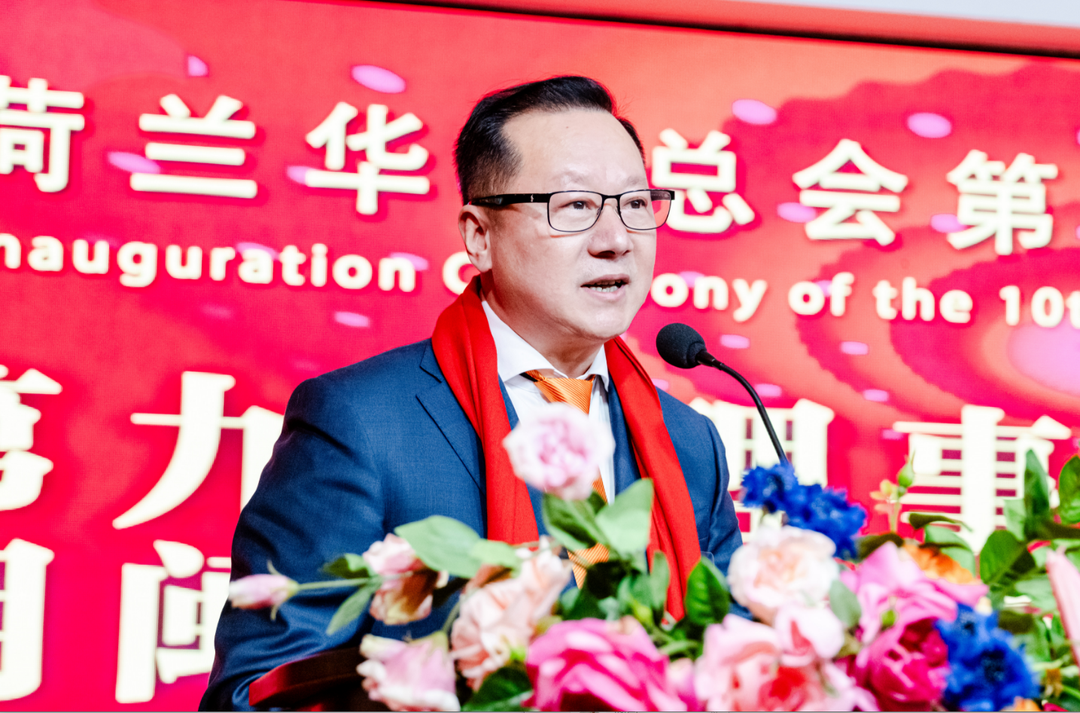 林峰会长致辞,代表新一届理事会向总会历届会长和理事,以及长期以来关心支持总会发展的各界朋友表示感谢。他表示,当前荷中关系持续向好发展,旅荷华人在经济、文化、教育、科技等领域的影响力日益增强,作为新一任会长深感责任重大,使命光荣,将努力做好以下几方面工作: