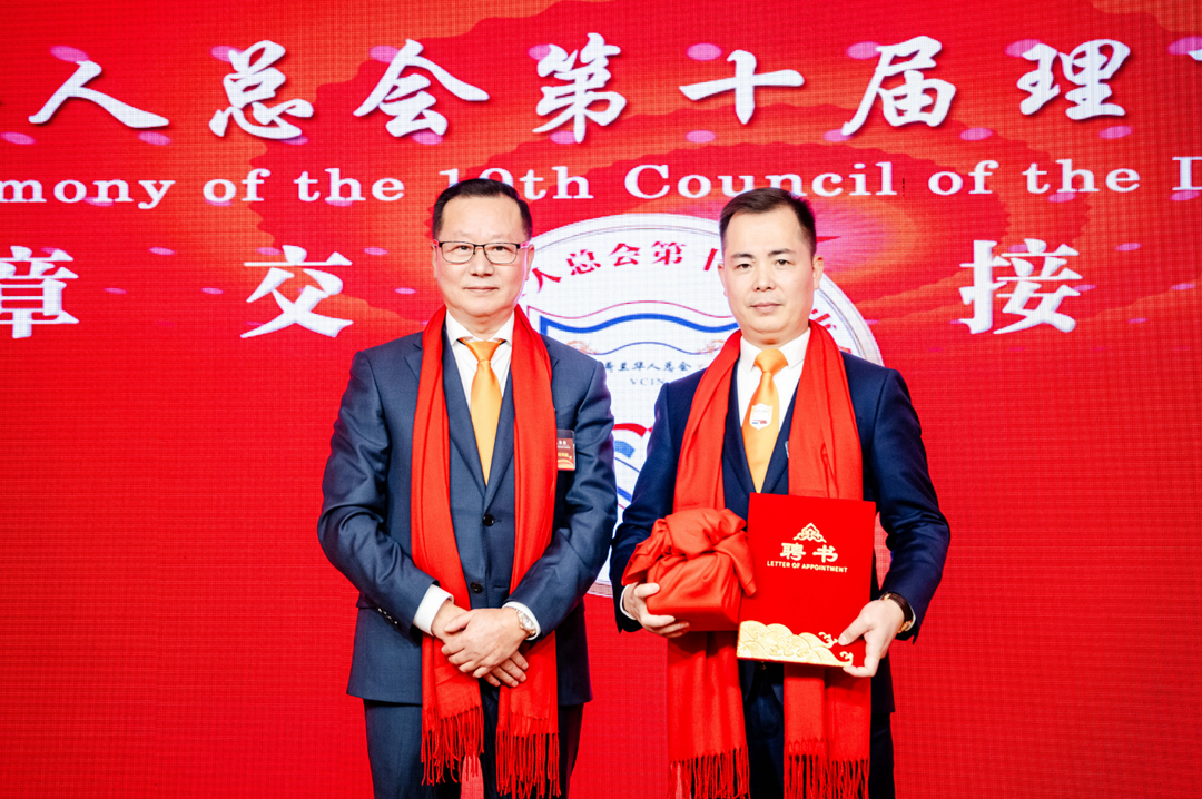 卸任会长胡闽生向新任会长林峰颁发了聘书,交付了会印。