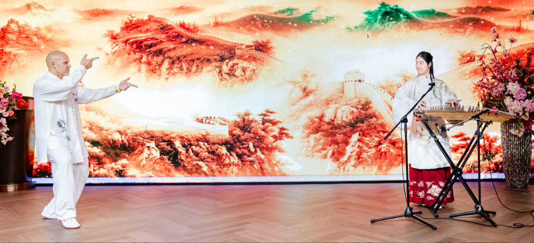 就职典礼后,荷兰华人著名女高音歌唱家籍晓岚领唱《走进新时代》,拉开新春庆典文艺演出的序幕,费氏武术学院团队、旅荷华人文艺工作者和爱好者、荷兰友人等共同奉献了一台中西合璧、精彩纷呈的文艺盛宴,劲歌热舞、太极武术、乐器演奏、旗袍走秀、京剧越剧等节目好戏连台,高潮迭起,观众掌声不断。