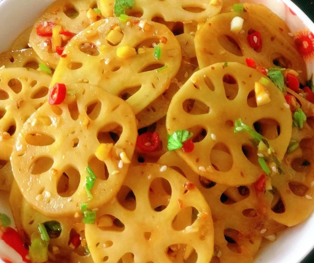 藕去皮切薄片,开水下锅焯一分钟捞出,过凉水沥干水分,加蒜末、生抽、香醋、少许盐和辣椒油,喜欢吃脆的可以多放些醋,翻拌均匀就搞定,清爽解腻