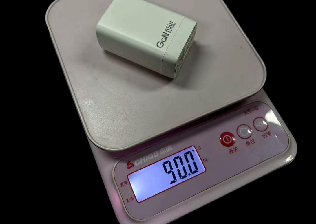 适配器的尺寸相较于大多数65w氮化镓充电器来说偏小,但实际重量却并没有因为体积的减小而缩掉很多: