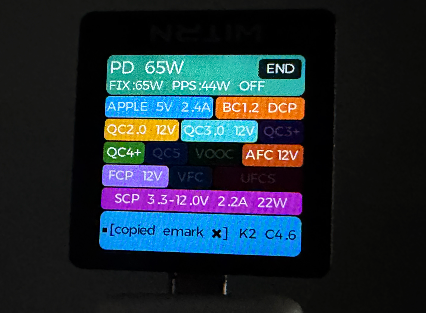 直接进入我们今天的协议检测,该说不说,虽然这个适配器比较便宜,但协议还算凑合,并且确实也有65w: