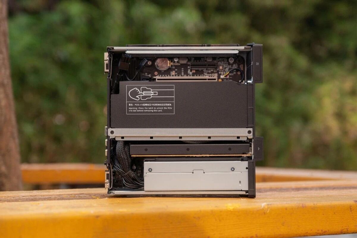 机器底部是机器的SN码,以及机器的拆卸方式指南。MS-02 Ultra保留了MS-01上的抽拉式设计,给整机维护带来了极大的便利性,这在桌面工作站里面也是独一份了。