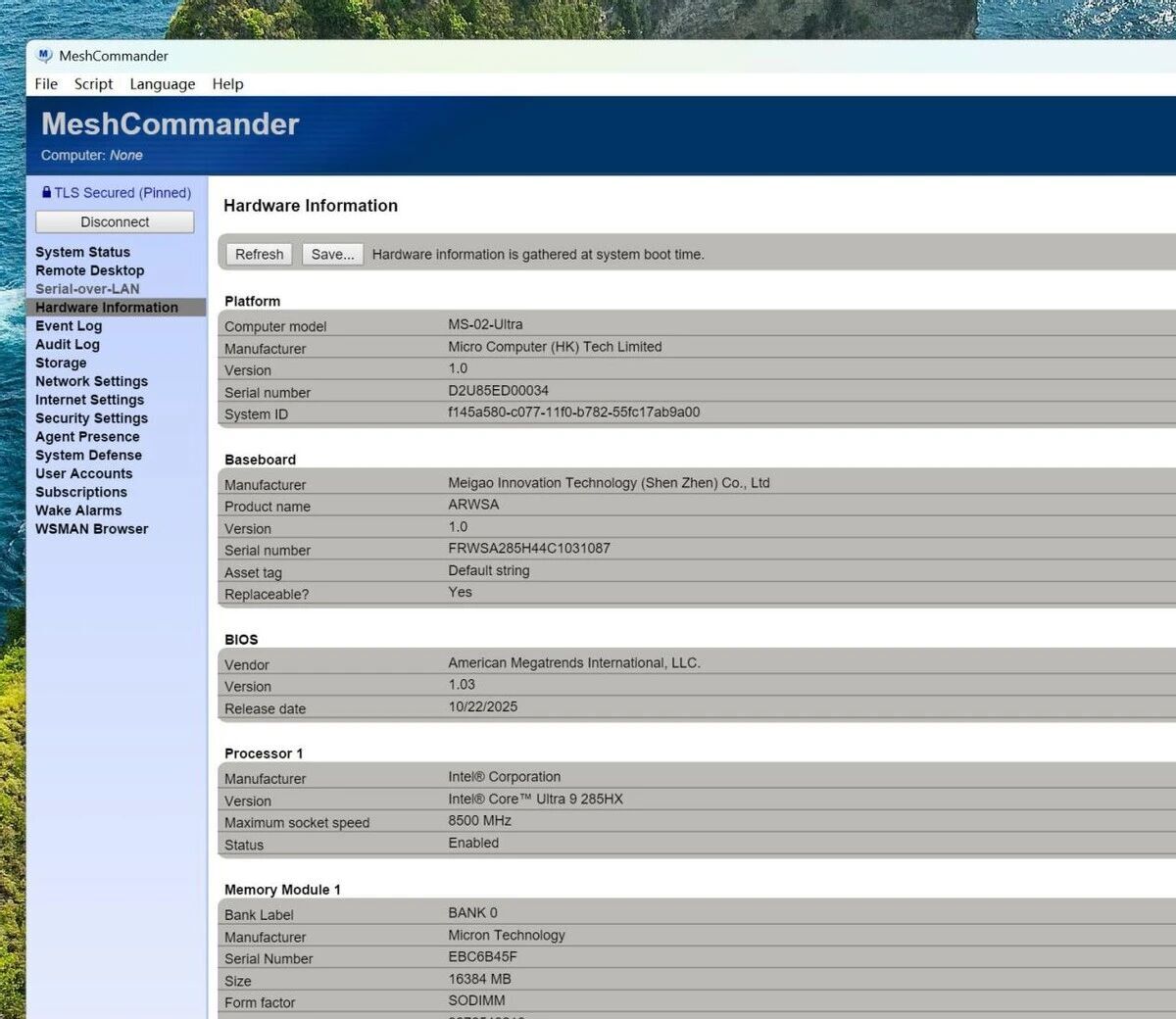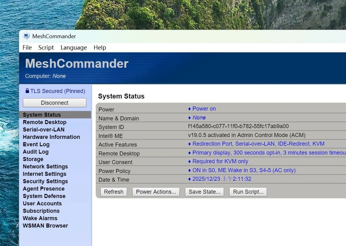 如果你想使用更多功能的话,则需要安装intel的meshcommander客户端,这样可以获得比网页版更多的功能,查看信息也更加全面