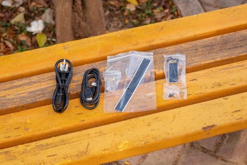 由于是内置电源,所以并没有标配板砖电源,只提供了电饭锅线,HDMI线,以及一些螺丝。那个长条的3M胶带是给显卡设计风道的,不要丢了。