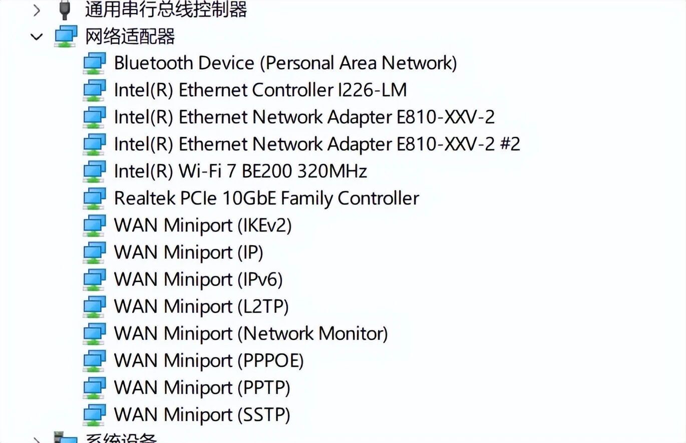 网卡是Intel平台的WIFI7标配——BE200,属于高端WIFI7网卡了。