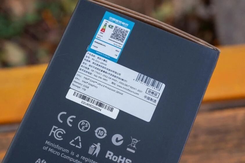 首先照例是开箱。MS-02 Ultra的包装很有铭凡的家族范儿,因为是Intel处理器,所以包装整体色调偏蓝,一边是机器的正面照,一边是反面。此外有机器的各种技术信息。