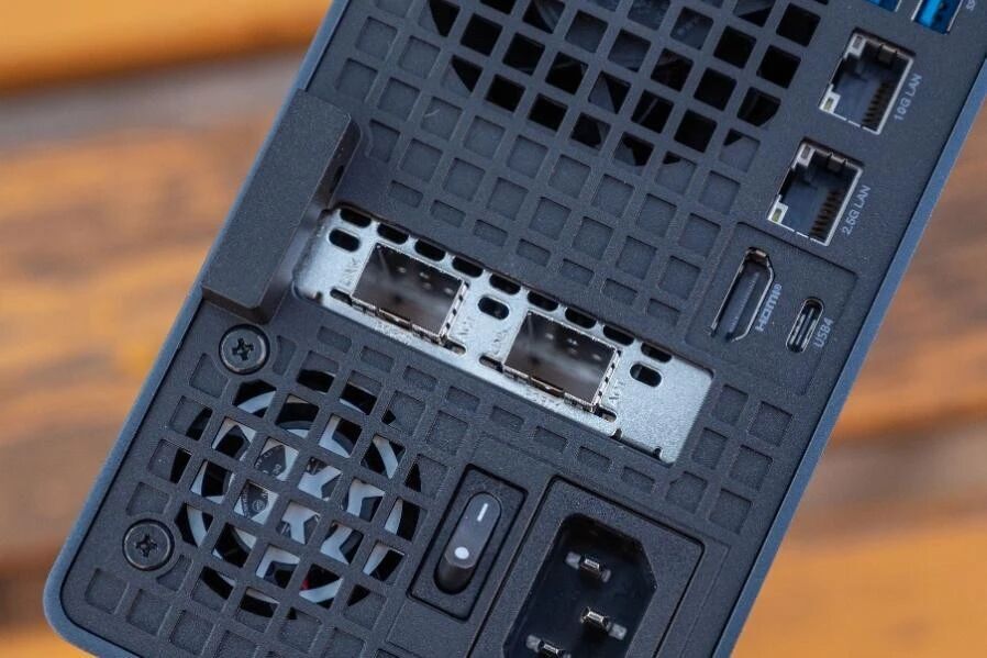 两颗25G网口则是标准的光口,毕竟超过10G以后电口就很难满足传输需求了。之所以选择25G作为标配网口。我咨询了下铭凡,得到的答复是企业的内网交换机一般都是25G,可以直接适配,无需更换,这说明铭凡在设计产品的时候也确实用心了。
