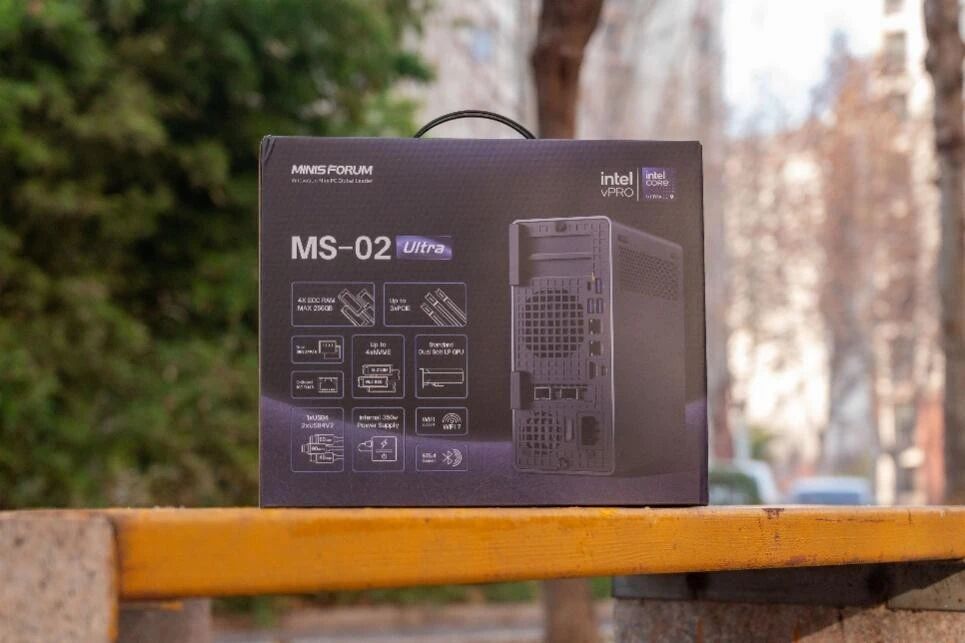 而这次,铭凡带来了他们家的最新旗舰产品——MS-02 Ultra桌面工作站,不仅提供了双25G网口,还支持4个M.2插槽的SSD,支持最大4根DDR5 SO-DIMM的内存,除此以外,也提供了独立的显卡插槽,可以说扩展性拉满了。更难得的是保持了很小的体积。所以我也对这款产品很感兴趣,从朋友那借了一台看看到底如何。