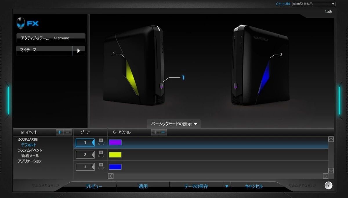 X51一共有3个发光区域,分别是左右侧板以及Alienware头像Logo,三个区域可以通过AlienFX软件来独立控制灯光颜色。