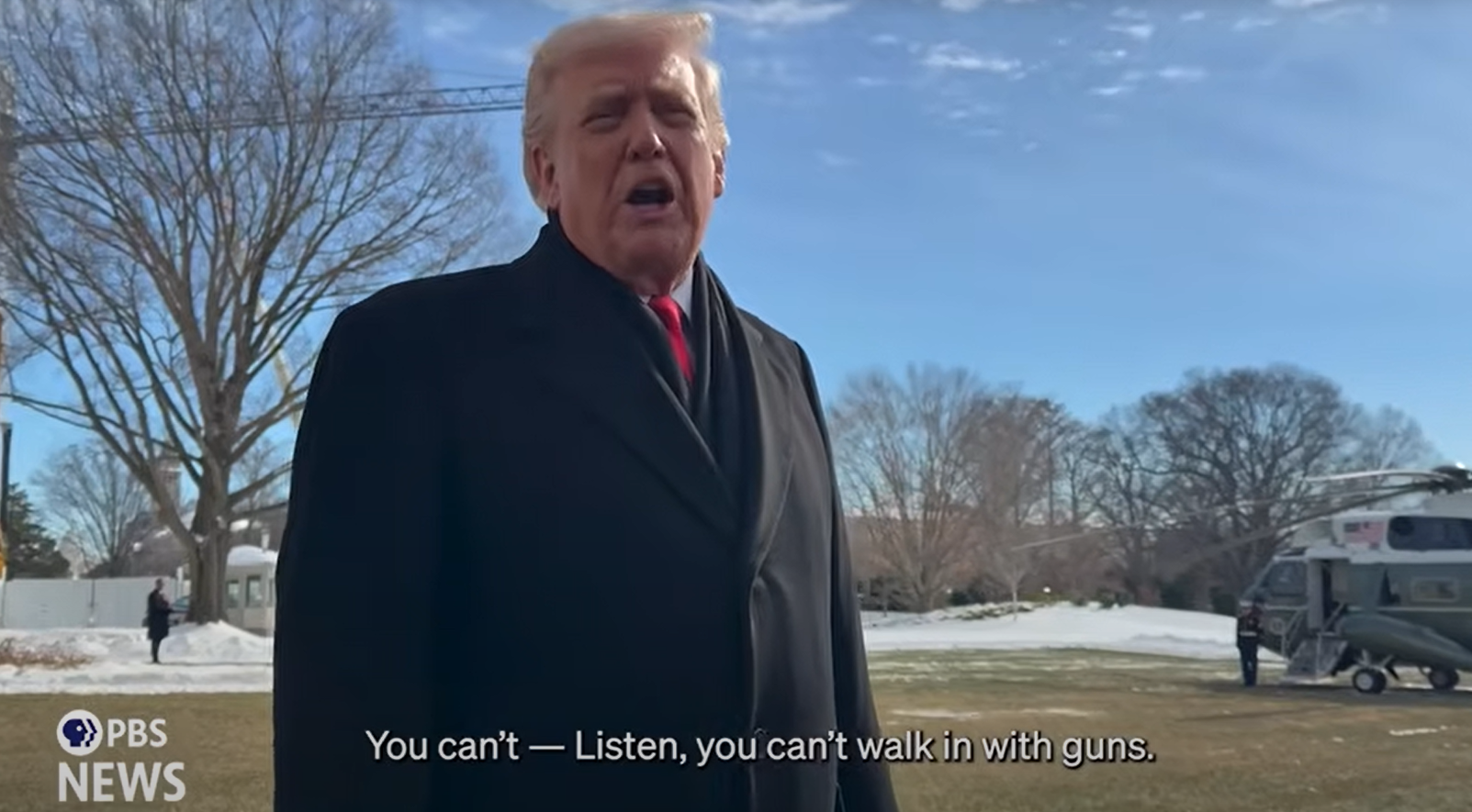据报道,PBS记者问特朗普,近日在明尼苏达州,美国公民亚历克斯·普雷蒂被联邦执法人员枪杀,普雷蒂事发时的行动“是否像一名刺客”。特朗普回答说“不”。但特朗普补充说,“你们不能拥有枪支,你们不能带着枪行走,你们不能这么做。”