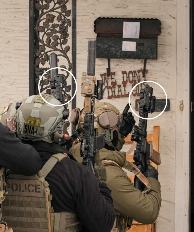 报道称,这些步枪末端安装着消音装置,此类装备流向已从军队延伸至执法部门与民间。因其能显著降低室内射击时造成的脑创伤与听力损伤风险,这类安全性能突出的装置现已广泛普及。靠近步枪前端位置,装配着两套“模块化先进武器激光系统”。这种激光系统被业内公认为顶级装备,在宣传资料中被描述为“适用于任何低光或无光作战环境的卓越解决方案”。