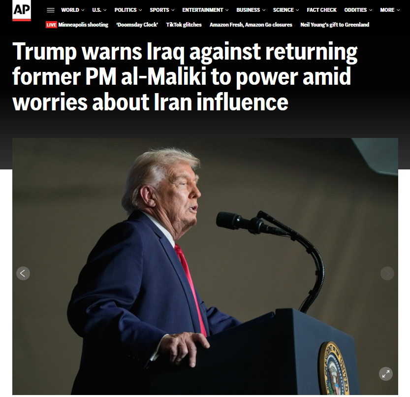 美国总统特朗普当地时间1月27日在社交媒体发文称,如果伊拉克前总理努里·马利基再度当选总理,美国将不再“援助”伊拉克。伊拉克新一届国民议会最大党团“协调框架联盟”日前发表声明,宣布提名马利基为新任总理人选。美方为何对伊拉克新总理人选公开威胁?可能如何对伊施压?美国政府对多国内政的公开干涉甚至军事袭击,对国际秩序造成怎样的冲击?威胁伊拉克 意在压伊朗公开威胁别国的总理人选,无疑是非常粗暴地干涉内政。那么,美国政府为何对伊拉克当前的总理人选指手画脚。美联社28日的报道直接点出,总统特朗普对伊拉克政治的干预正值中东地区一个令人担忧的时刻,美方正在考虑对伊拉克的邻国伊朗进行新的打击,“美国政府认为马利基与伊朗走得太近”。美联社网站相关报道截图就在特朗普公开威胁之前,美国国务卿鲁比奥也曾致电伊拉克政府官员威胁称,“美国担心亲伊朗政府在伊拉克扎根”,“亲伊朗政府不能使伊拉克远离地区冲突,也不能推进美国和伊拉克之间的互利伙伴关系”。近期,美方已通过多个渠道向伊拉克政界人士威胁,如果伊朗支持的武装组织进入下届伊拉克政府,美国将对伊拉克政府进行制裁,可能包括切断其至关重要的石油收入。伊拉克奉行积极务实的外交政策,坚持独立自主和不干涉内政原则,改善并平衡发展同周边国家关系,其中当然包括邻国伊朗。然而,这些正常的政策,在美国方面敌视伊朗的长期意识形态下却成了“问题”。实际上,美国利用入侵伊拉克推翻萨达姆政权之后在伊建立的影响力,长期以来以是否“亲伊朗”等美方立场来判断和影响伊拉克的内政。控制石油结算 美国对伊拉克植入“财政病毒”美国2003年入侵伊拉克之后,对伊拉克政治进行“民主化改造”,对伊提供“军事援助”,“帮助”其石油等领域经济发展。但是,这些并不是以符合伊拉克利益的方式进行,而是以最符合美国利益的标准推进。在此过程中,持续至今并且非常核心的一项安排就是控制伊拉克石油收入,这也是美国施压伊拉克的惯用手段。石油出口收入对伊拉克至关重要,约占其国内生产总值的75%、政府财政收入的90%。那么,美国是如何控制伊拉克的石油收入呢?这实际上源于美国入侵伊拉克之后对其植入的一个“财政病毒”——也就是2003年建立的“伊拉克发展基金”,一套由当时的美英占领当局主导的操控伊拉克石油出口的新机制,该基金设在纽约联邦储备银行。从那时起到如今,伊拉克的石油收入都要通过纽约联邦储备银行才能汇入伊拉克中央银行。阿拉比亚电视台网站相关报道截图据多家媒体日前报道,当伊拉克政府要求美军在2020年撤离伊拉克时,美国就曾威胁要切断伊拉克获得石油收入的渠道,当时伊方被迫作出了让步。如今,美国又因为伊朗的因素威胁制裁伊拉克,其中就包括“通过纽约联邦储备银行获得的重要石油收入”。实际上,多年来美国为了维持其对伊朗的单边制裁,已经对十多家伊拉克银行实施了制裁,目的是“遏制伊朗通过伊拉克银行体系获得美元”。美国政府对外干涉 从台下走向公开化针对美国对伊拉克的威胁,伊拉克新一届国民议会最大党团“协调框架联盟”27日召开紧急会议进行商讨。伊拉克沙法齐通讯社相关报道截图法国媒体的报道评论认为,这是特朗普政府公开对外国进行政治干涉的最新例证。报道称,美国长期干预其他国家,但特朗普政府打破先例,开始进行“公开干预”。从波兰、罗马尼亚再到洪都拉斯,美国官方在这些国家的选举中公开支持右翼候选人。此外,本月早些时候,特朗普政府还对委内瑞拉进行了致命的军事行动。美联社的报道也指出,这不是特朗普上任以来第一次干预他国的政治。本月,特朗普政府多次威胁伊朗,包括将采取军事行动。法国24新闻台网站相关报道截图二战以后,全世界的人们痛定思痛,要求在独立、平等的基础上建立新的国际关系。一些基本法律原则,如主权平等原则、不干涉内政原则等,在战后大量国际法文书中得到确认,逐渐为各国所普遍接受。如今,美国政府肆无忌惮地干涉他国内政,甚至直接军事袭击,对几十年来形成的国际秩序造成了严重冲击。美国的所作所为,就是让“美国优先”凌驾主权平等,让舰炮外交轰击和平协商,让丛林法则笼罩人类文明。来源|总台环球资讯记者|王昆鹏
