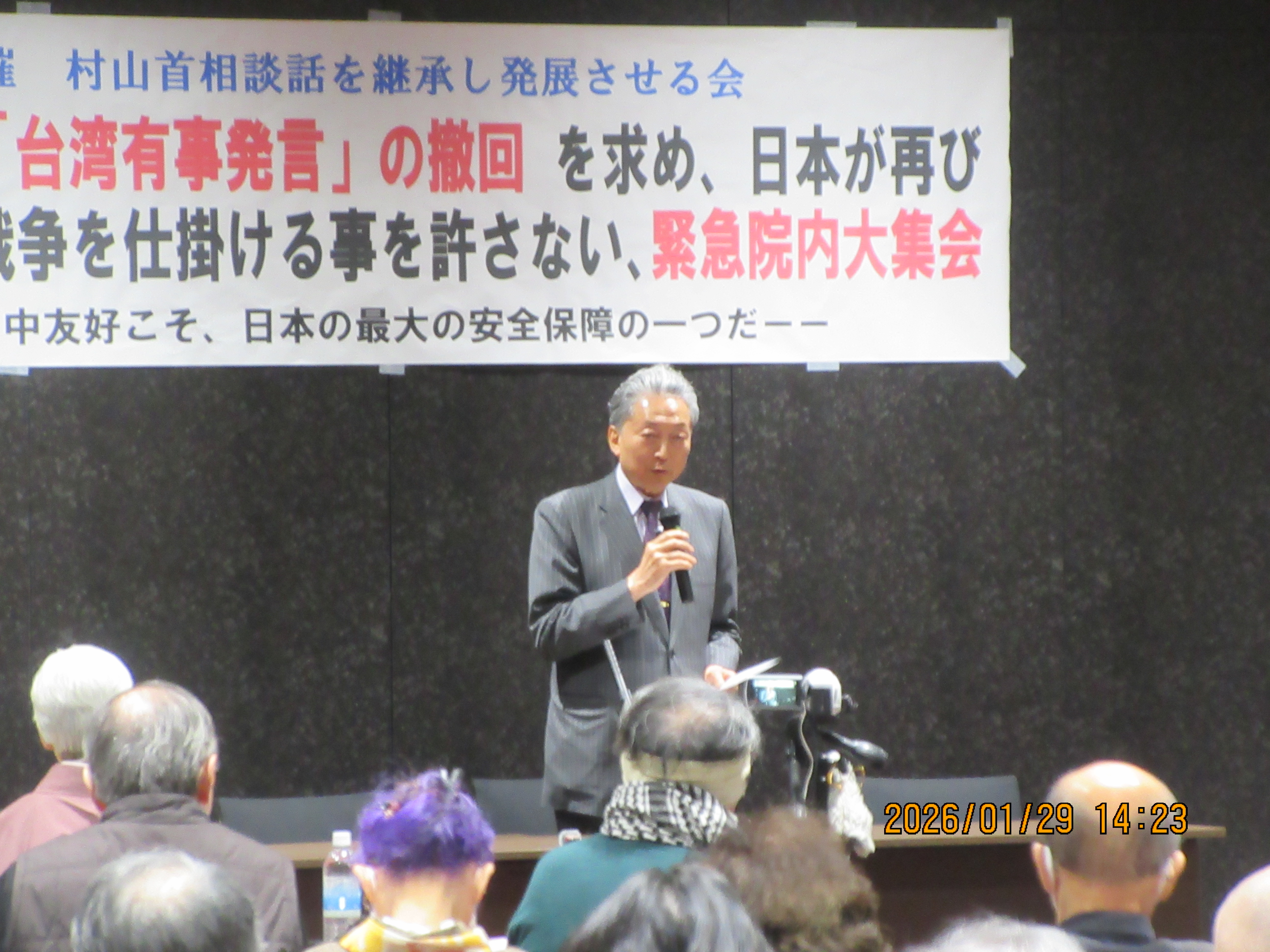 日本共同社29日报道称,日本前首相鸠山由纪夫在市民集会上作为嘉宾致辞,批评高市早苗的错误言论破坏日中关系,“不能让她继续担任首相”,提醒选民在众议院选举投票时应予以考虑。