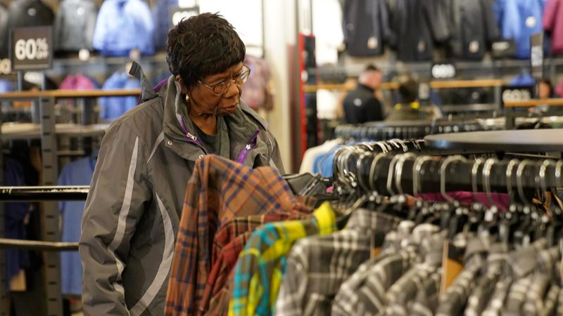 1月22日,在美国纽约一处购物中心,顾客查看价签。新华社记者张凤国摄