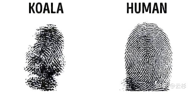 呐,左边是考拉的,右边是人类的,不加备注的话的确很难分辨,而且研究发现每一只考拉的指纹也是独一无二的。