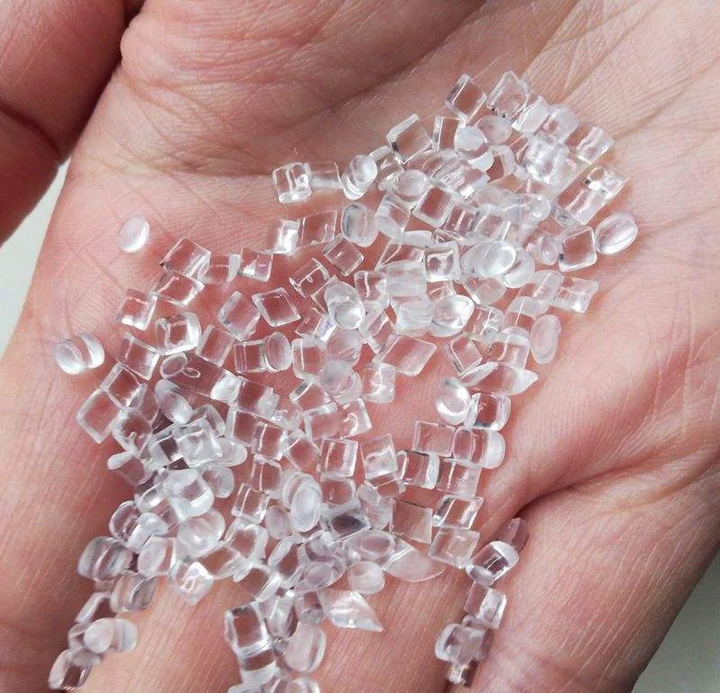 由于回收标识是 1,又俗称一号塑料,原料是一种透明颗粒。