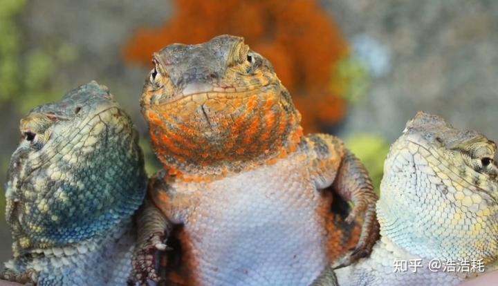 而大黄是里面最弱的,不仅没有领地,长得也更接近雌性,属于女装大佬。所以它们基本上不动粗,因为动了也打不过。但是他们有一个癖好,就是喜欢趁乱溜进别人的领地,“偷”走交配机会。而这三者之间的精妙之处,就在于它们的循环克制关系:大橙可以凭借体型和耐力优势,强行冲进蓝色蜥蜴的领地,把蓝色蜥蜴赶走,抢走它们的配偶。但在这方面却被大黄克制,因为大橙虽然强壮,但因为领地太大、老婆太多,它们根本顾不过来。而大黄本身长得像雌性,所以可以大摇大摆地混进大橙的领地。等大橙在领地东头打架时,大黄已经在西头和它的配偶给它带绿帽了。但大黄的这个特点,就被纯爱战士大蓝克的死死的,想溜进来偷情?很多大蓝实行的是“一夫一妻制”,它们时刻盯着自己那几个配偶,大黄本身也干不过大蓝,所以根本没机会下手。