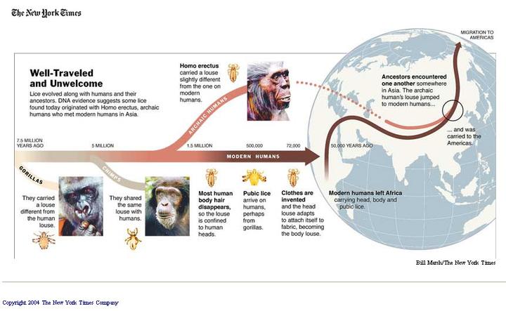 通过 DNA 溯源,研究者发现,人类头虱又大约是从 330 万年前起源于大猩猩虱。