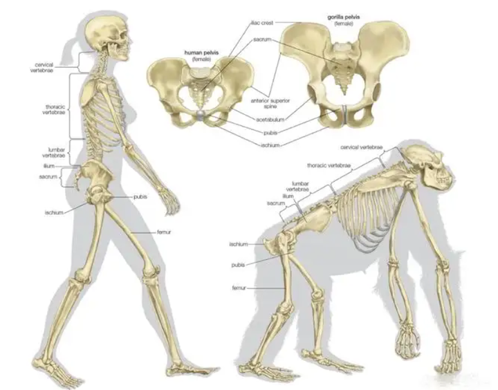 这样竖立的盆腔结构,不仅是对直立行走的适应,也更有利于臀肌的附着。