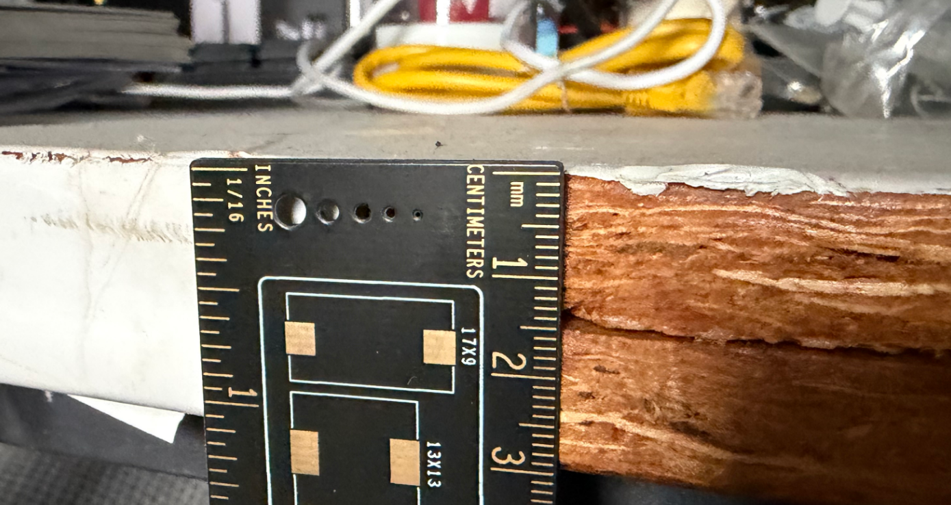 但这玩意是实在是太薄了,毕竟是用于装修的,这东西本身就不会做的太厚,能有1.5cm就算是还可以的了,但这个厚度对于电脑桌这就很致命了兄弟。我们使用场景是多台高配主机+32寸显示器,可能还会上显示器支架。这个厚度显然就十分吃力了。于是我们把两片合在了一起,组成了一张3cm厚度的电脑桌: