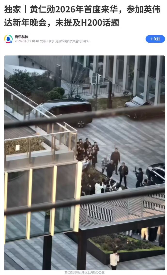 新闻一:英伟达 CEO 黄仁勋今年首度来华参加公司新年晚会,未提及 H200 话题