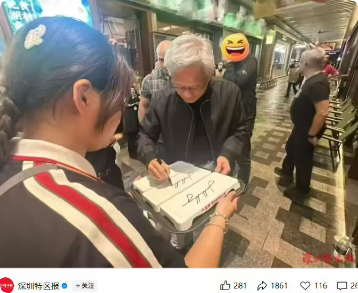 1 月 28 日消息,据《深圳特区报》今日报道,英伟达创始人兼 CEO 黄仁勋昨晚与 6 位友人在深圳福田 CBD 的八合里牛肉火锅店(领展中心城店)用餐。相比于前几天在上海时仅穿了一件行政夹克,黄仁勋此次穿回了他标志性的皮夹克。