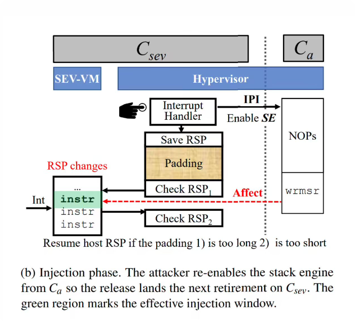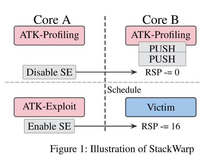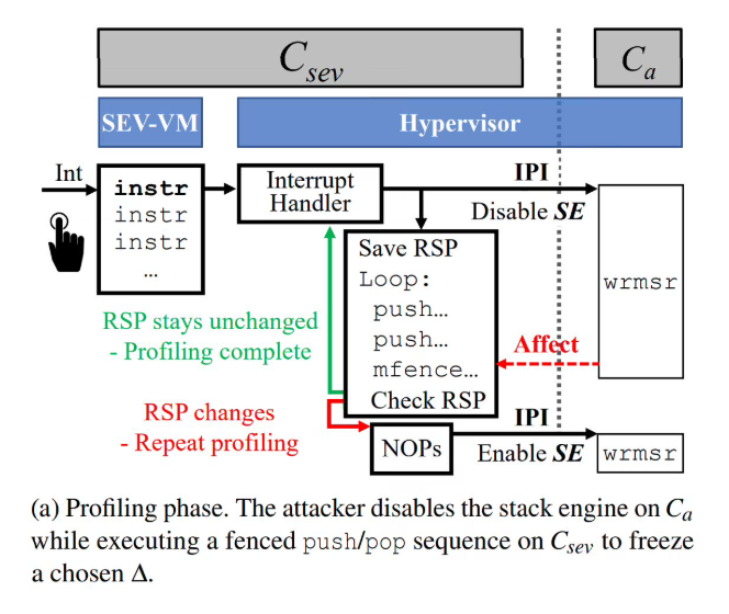 恶意的云提供商可以通过 CPU 线程切换该控制位,引发连锁反应,影响运行加密虚拟机的同级线程。这种操作会让 CPU “冻结”堆栈指针的架构更新。