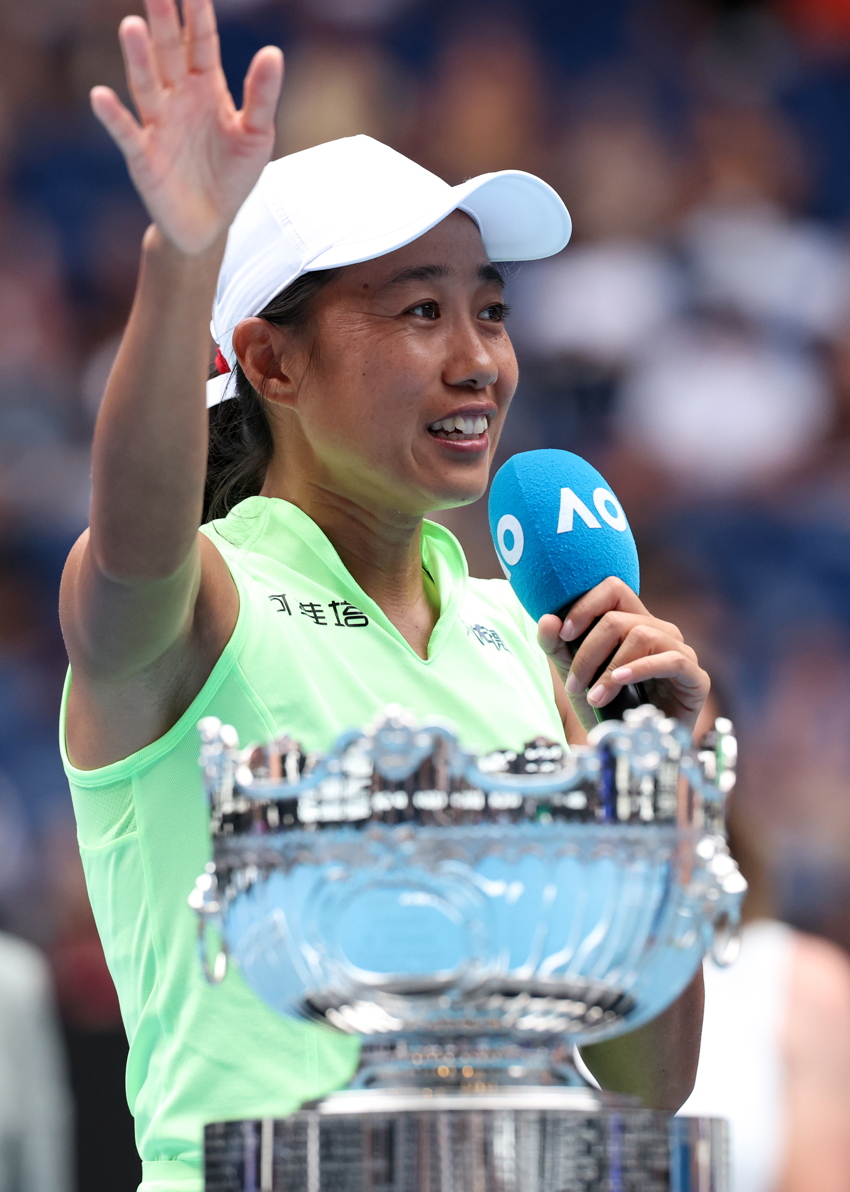 1月31日,在2026澳大利亚网球公开赛女双决赛中,37岁的中国球员张帅搭档比利时球员梅尔滕斯在首盘1-4落后的逆境下顽强追击,最终以2-0战胜7号种子达尼丽娜/克鲁尼奇,夺得冠军。