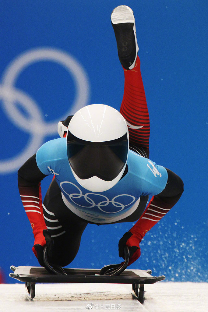 北京2022年冬奥会男子单人雪橇项目比赛,中国选手范铎耀在比赛中。新华社记者贺长山摄