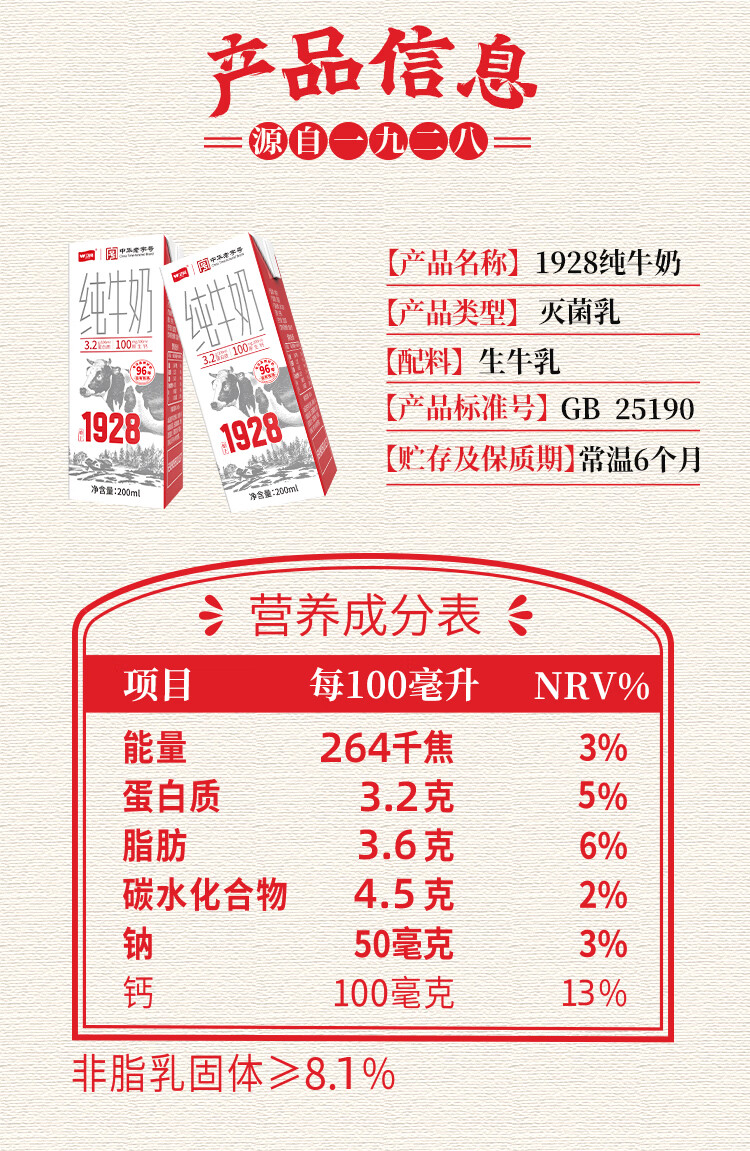 蛋白质 3.2g / 100ml,钙 100mg / 100ml。