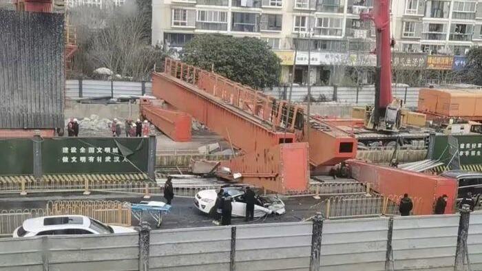 知情人说,事发武汉后湖大道段,具体在后湖四路和后湖五路之间,是地铁施工作业区,该片区已是收尾阶段,上午是拆卸第一台龙门吊,拆卸过程中发生意外,“不能理解的是,吊这么重体积这么大的物件,怎么下面路段这一片竟然还允许通车?”在网上,有不少网友质疑作业时为什么不进行交通限制。