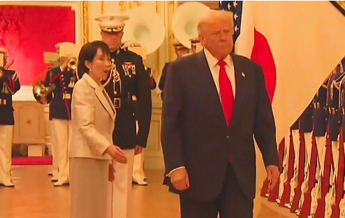 当时,在高市早苗向美国国旗行礼后,特朗普并没有按照惯例向日本国旗行礼,而是径直走开了,搞得高市早苗直接“石化”……