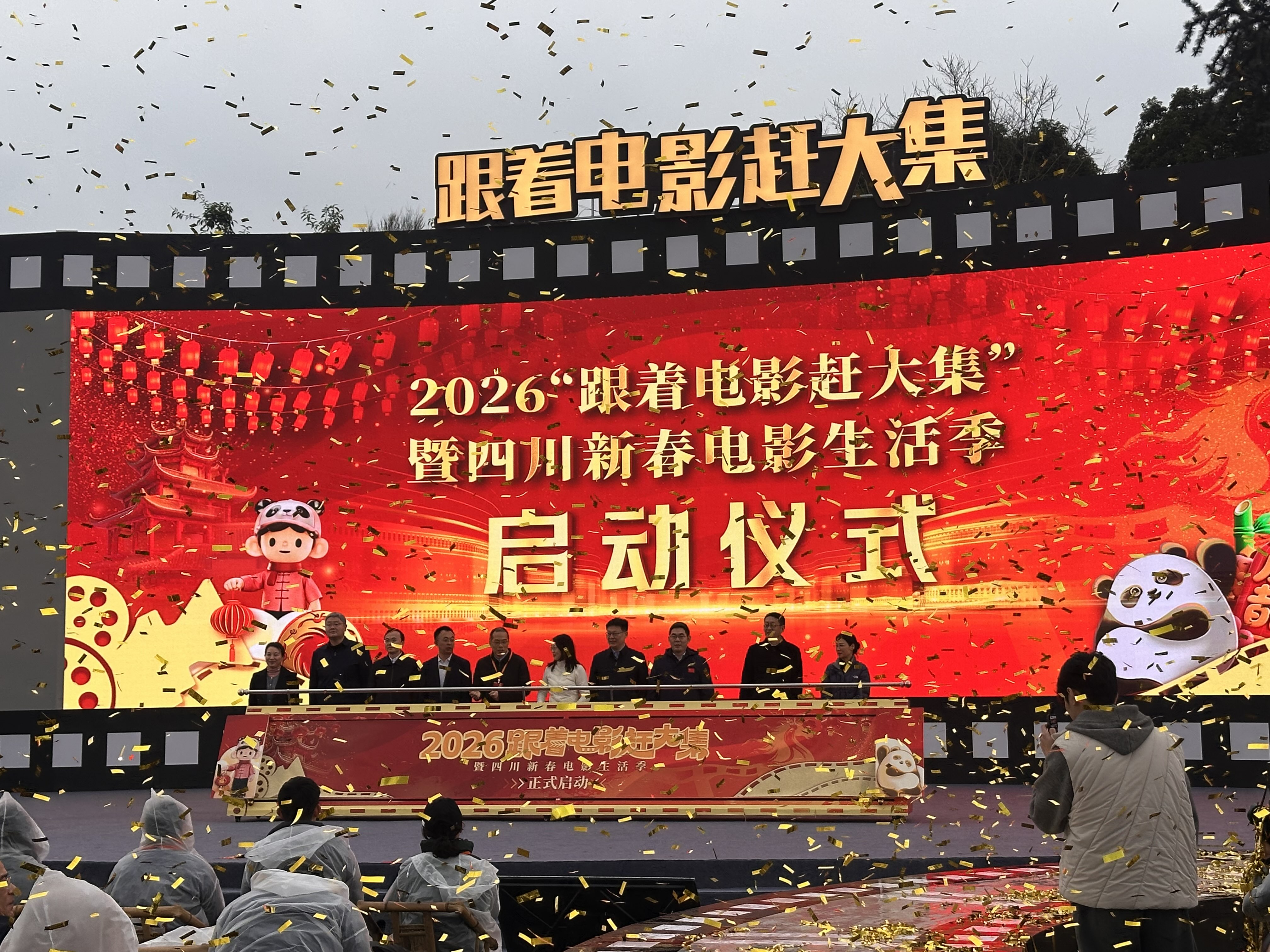 摘要:p;周琴 摄影报道2月8日下午,在安仁古镇坝子广场上,一面巨型银幕打造的舞台格外引人注目,这正是由中央宣传部电影局、农业农村部办公厅指导,四川省电影局等联合主办,峨眉电影集团等共同承办的“跟着电影赶大集”暨四川新春电影生活季启动仪式的现场。启动仪式现场本次活动启动仪式以“锦绣天府、光影四川”为主题,呈现了一系列融合传统与现代的精彩节目:原创快闪《四川欢迎您》热情开场,非遗摇滚《西岭山歌也摇滚》碰撞出艺术火花,舞蹈《古蜀光赋》演绎文化传承。情景演绎节目《光影百年·锦绣天府》,通过影视演员与“哪吒”“功夫熊猫”等电影角色的趣味互动,巧妙串联起四川电影百年发展的闪光历程,生动凸显了“四川造”电影在中国乃至世界电影长河中的重要地位与卓越贡献。