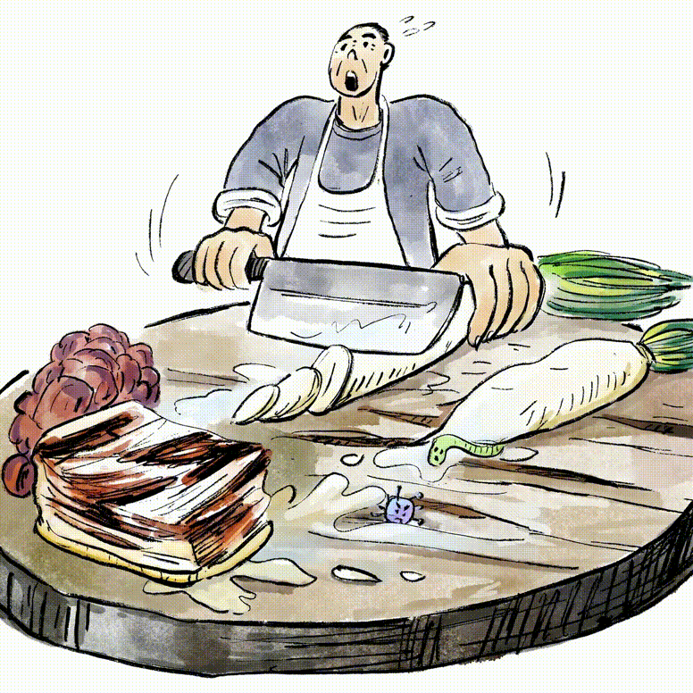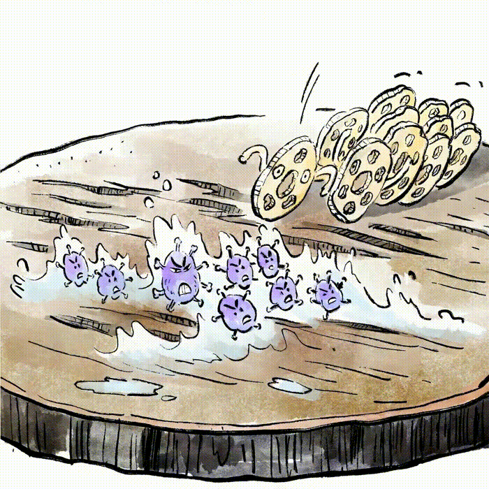 当然也少不了使用习惯不当:生熟食物共用菜板,易导致致病菌、寄生虫卵交叉污染。