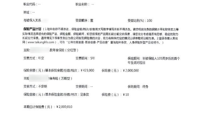 AI摘要:2024年6月30号,业务员抛给李先生一个大单。在保险公司业务员的催促下,李先生签订了这份名为“某长寿保险产品计划”的合同,当天就缴纳了第一期保费200万元。合同里明确写着,1000万本金要等到李先生年满105周岁才能支取,五年后只能每年领取少量红利。