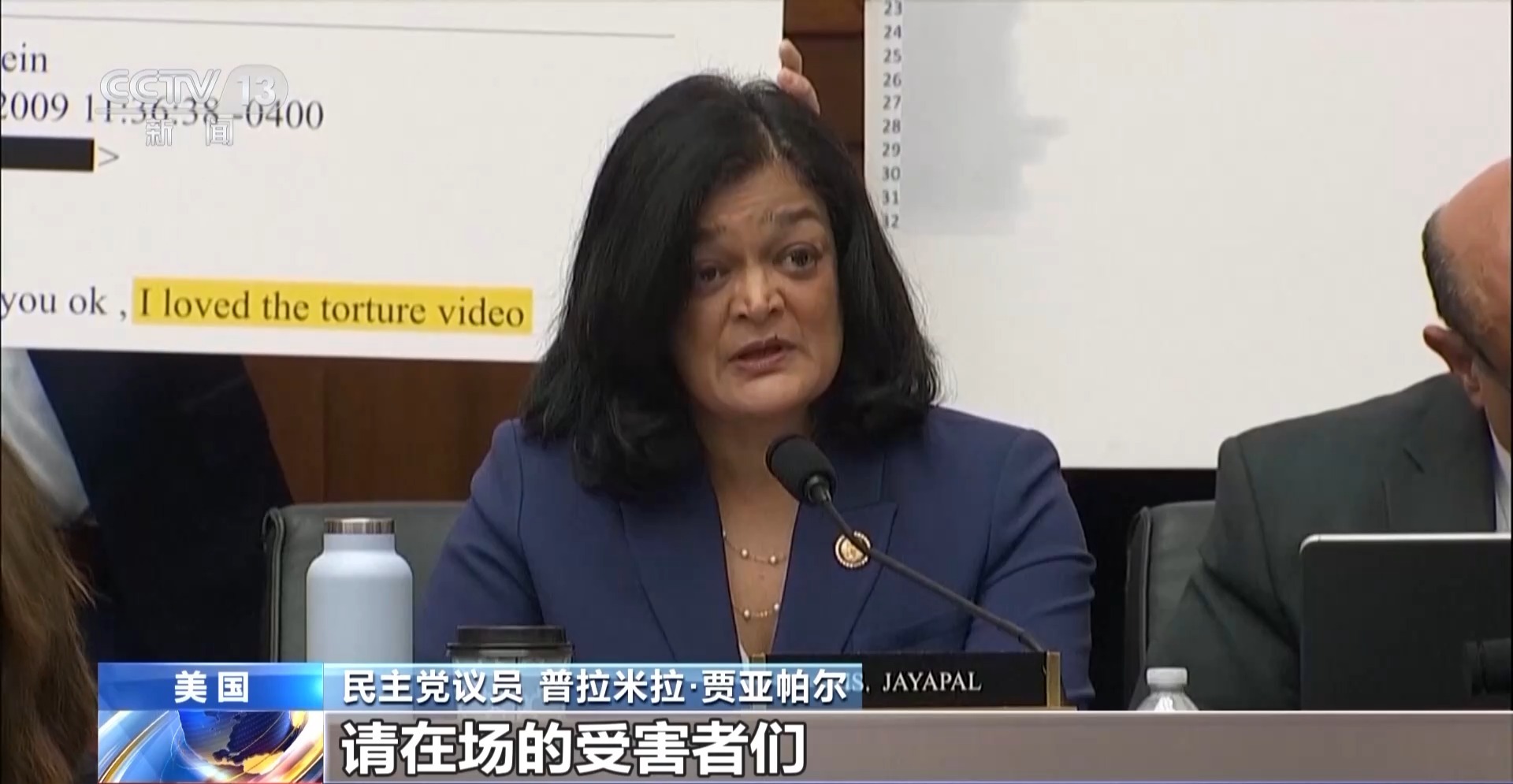 民主党议员 普拉米拉·贾亚帕尔:请在场的受害者们,如果愿意的话,请站起来。如果愿意的话,请举手示意,看看还有多少人至今未能与司法部会面。请记录在案,每一位受害者都举起了手。