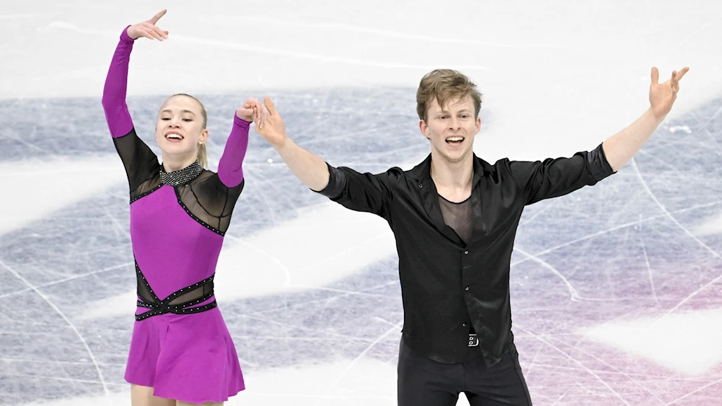 瑞典冰舞选手雷坦(左)与马祖洛夫在米兰冬奥会比赛后