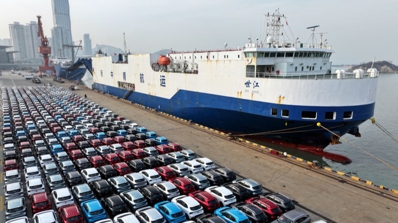 数据显示,中国去年生产了全球三分之一的汽车,其中超过800万辆出口到全球其他市场,比2024年增长30%。中国在2023年超过日本,成为世界最大的汽车出口国。中国在电动汽车领域尤其具有竞争力,比亚迪去年超过特斯拉,成为全球最大电动汽车公司。