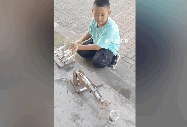 有孩子拆旧电线和针管做出“全液压”机械臂;