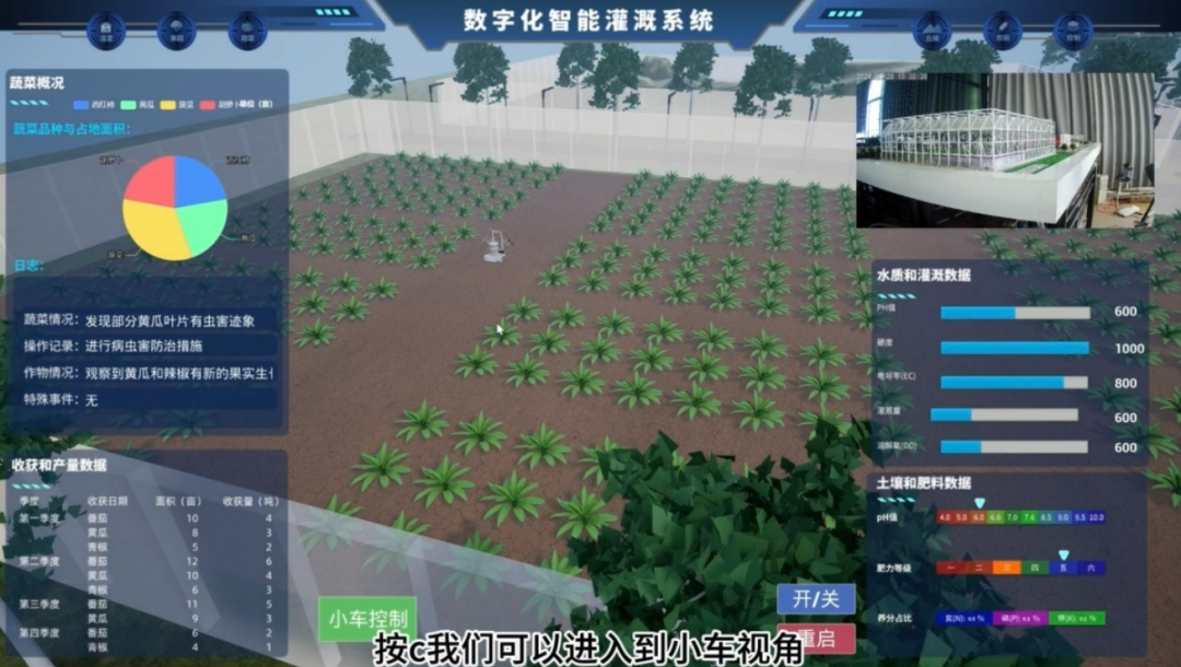 他们为农田创建了“数字孪生”模型,在屏幕上一比一还原农田状况,再通过物联网技术,用AI算法决策,遥控真实的灌溉小车进行精准水肥作业。