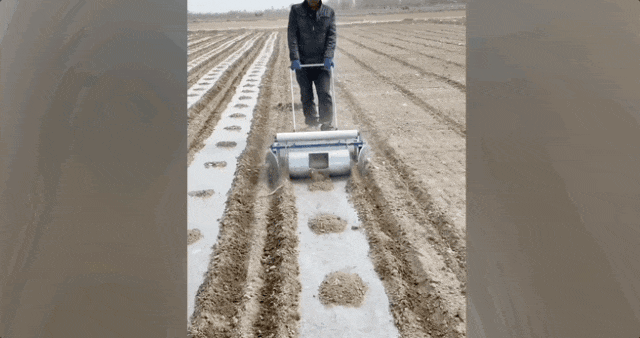 有人用奶粉桶烧个小孔,替地膜快速打眼,以前弯腰半天,现在几秒一个。