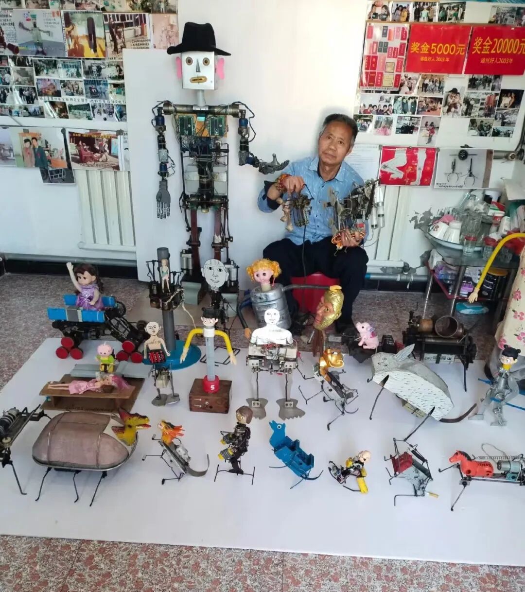 吴玉禄制作的机器人和部分纯手工作品