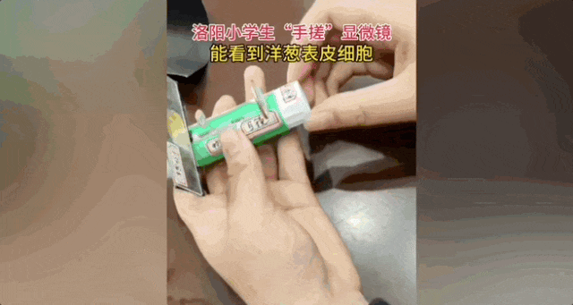 有孩子从激光笔里取出凸透镜、照相机里取出目镜和旧器件组装成一台“自制显微镜”,竟能看见洋葱表皮细胞;