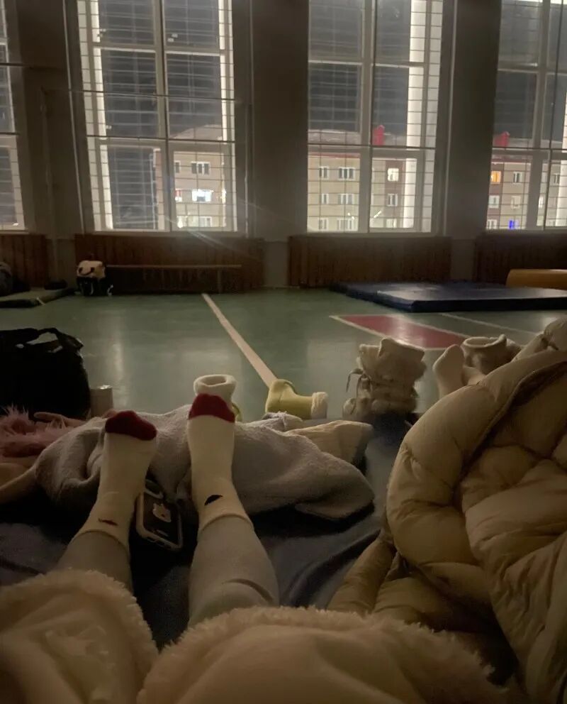 孙女士说:“简单吃了晚饭后,我们被安排到捷里镇上唯一一所学校,这所学校已经成为安置点,有暖气,热水,厕所。这应该都是当地政府安排的,小食堂一直在免费提供水、咖啡、面包、火腿、芝士、意面等食物,里面一层二层已经有不少中国游客在等待。”
