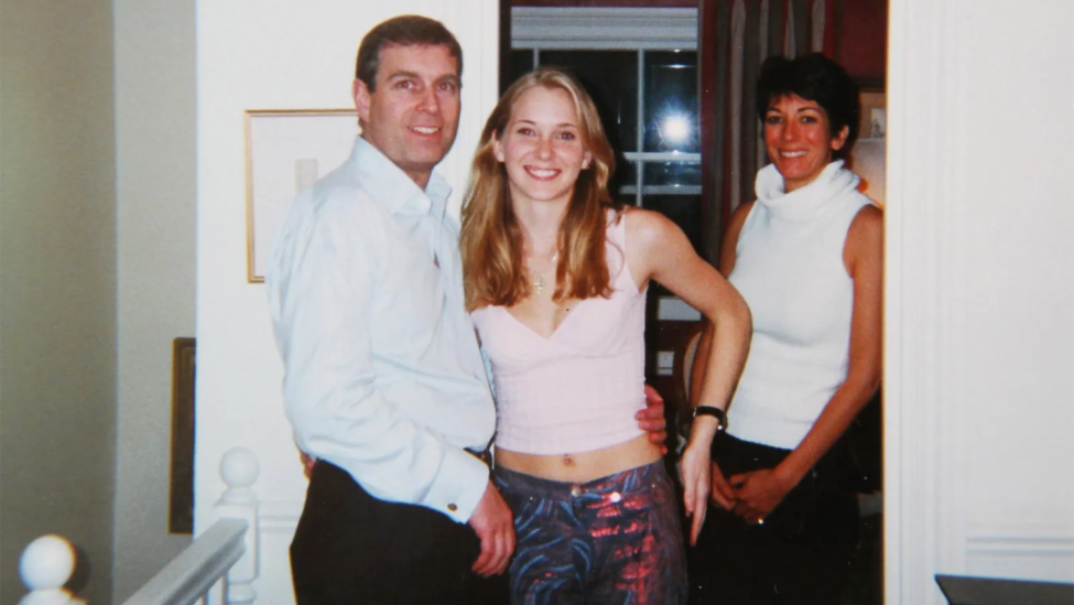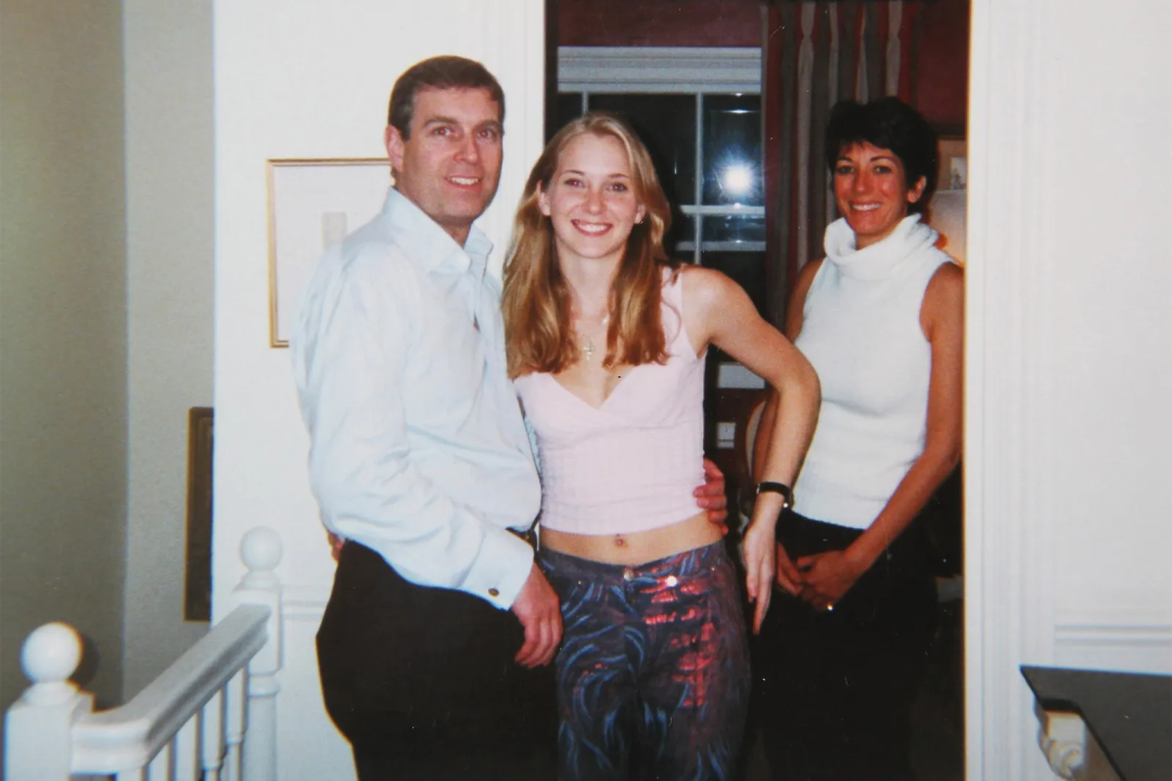 (安德鲁、已故受害者维吉尼亚·吉弗雷、格西莱恩,照片由爱泼斯坦拍摄)